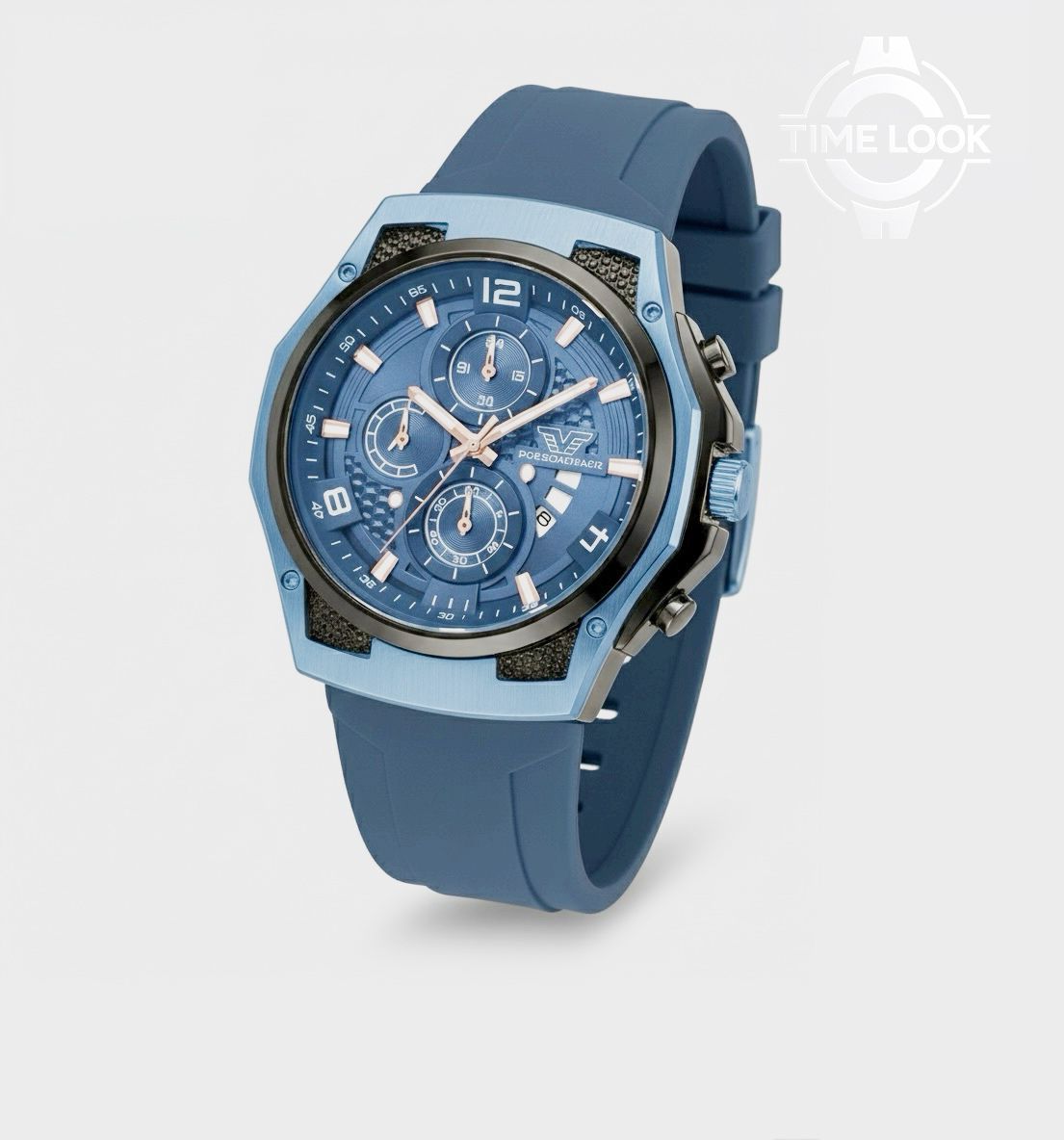 Bold and sporty, this chronograph watch features a striking brown dial and rose gold-tone case accents. Finished with a comfortable brown silicone strap, it’s the perfect blend of luxury and everyday ruggedness.