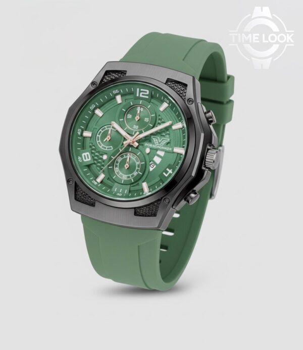 Bold and sporty, this chronograph watch features a striking brown dial and rose gold-tone case accents. Finished with a comfortable brown silicone strap, it’s the perfect blend of luxury and everyday ruggedness.
